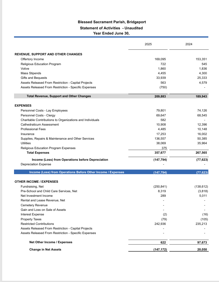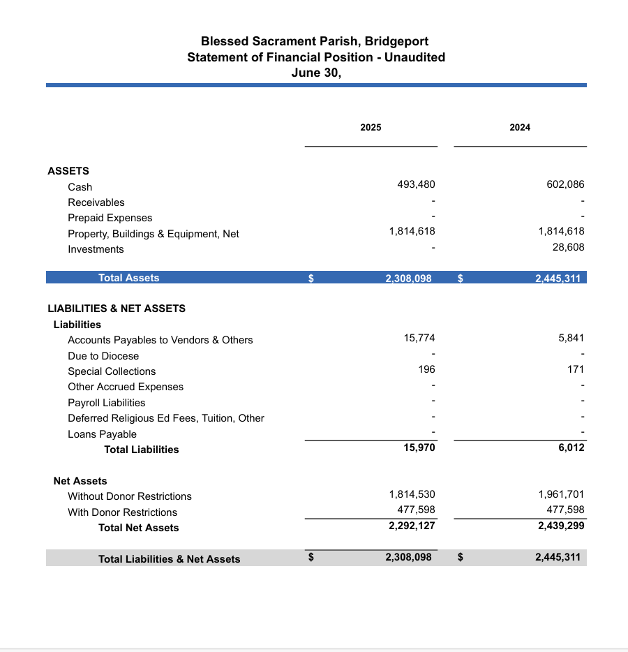 In conjunction with Accountability Sunday, we now have copies of the most recent financial reports available for you to review.