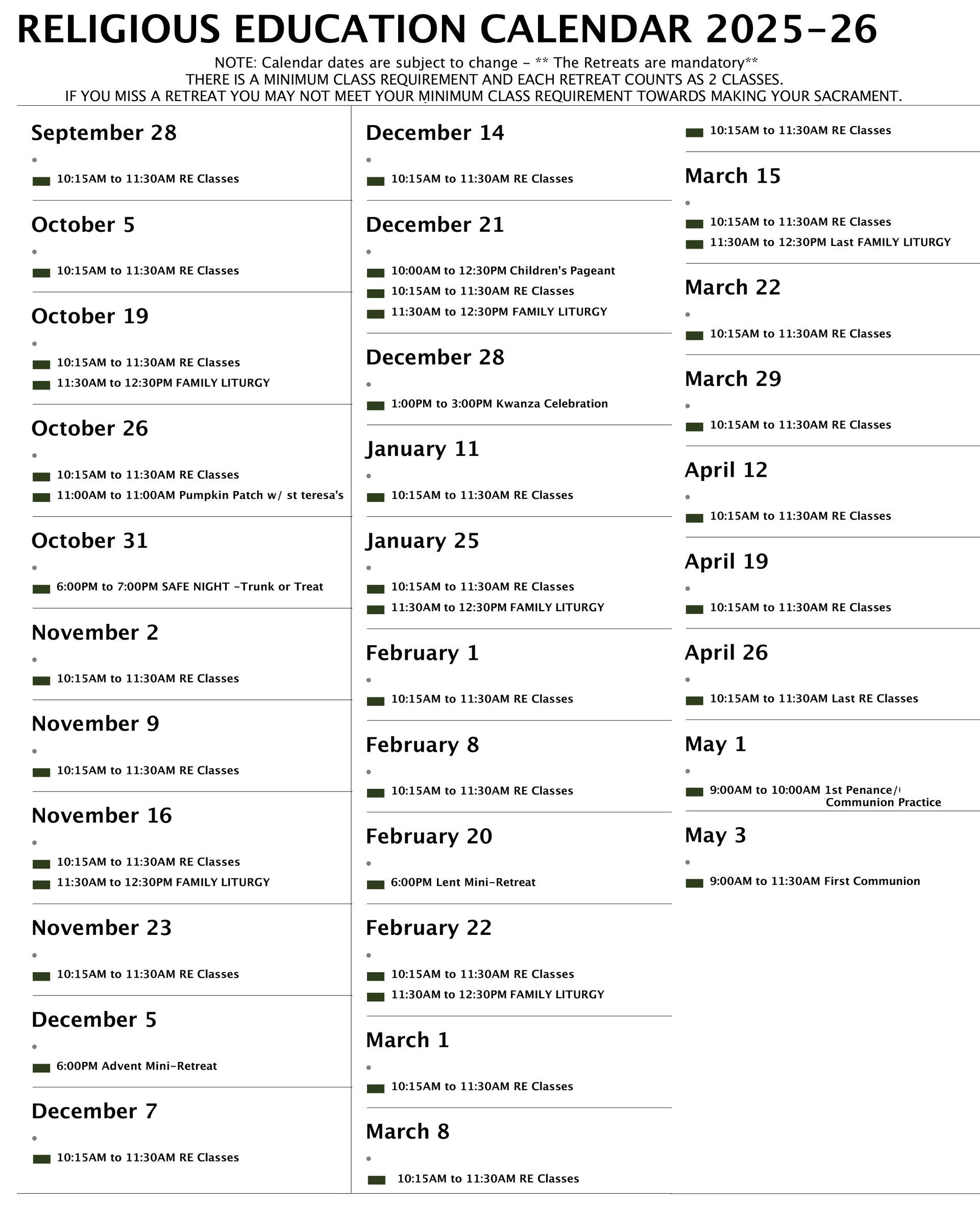 - All Children of the parish should be enrolled if they do not attend a Catholic School (where the education is part of the curriculum.)